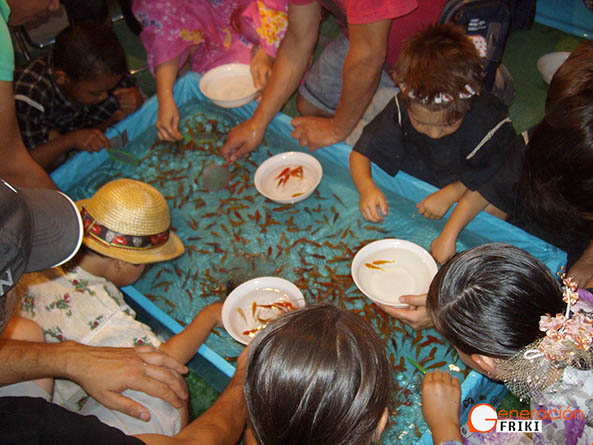 Además de los puestos de comida, los asistentes pudieron disfrutar de otras actividades típicas que se situaban en una carpa a la derecha del recinto: no podían faltar el tradicional kingyo sukui, mi favorito, que consiste en pescar peces con una pequeña red de papel muy fino, o el yo-yo sukui, un juego muy similar en el que se pescan globos llenos de aire y agua con un anzuelo sujeto por una cuerda de papel, así como un castillo hinchable para los más pequeños que, siendo sinceros, no pegaba mucho con la temática del evento (y es que nos gusta que todo sea muy japonés en los pocos eventos del año en los que podemos disfrutar de esta cultura).