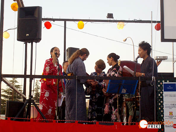 Y a las ocho y media, el plato fuerte: el inicio de los bailes Bon Odori divididos en cuatro categorías, Madrid Ondo, Tankobushi, Katsushika Ondo y Tokyo Ondo, en los que todos los asistentes estaban invitados a participar sin necesidad de conocimientos previos, ya que el círculo interior de la danza se componía de profesores y voluntarios que marcaban los pasos. En el descanso de los bailes, sobre las nueve y media, fueron anunciados los ganadores del concurso “Miss y Míster Yukata”, así como los del “Campeonato de kingyo sukui”, y asistimos a una segunda exhibición de wadaiko (tan animada como la primera, ¡Keita nos pareció incansable!) antes de que se reanudasen los bailes hasta la clausura del evento, a las diez y media de la noche.