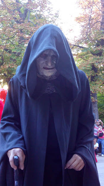 Total, que una buena idea y una mala ejecución. Veías chavales (y no tan chavales) ansiosos por ver a sus villanos favoritos y te encontrabas un espectáculo que parecía salido de cualquier Cabalgata de los Reyes Magos. Cada uno mirando a un lado. Sólo les faltaba tirar caramelos. ¿No es esto un DESFILE? pues los parvulitos en el cole lo hacen mejor. Se entiende que debe haber un paso marcial, un sentir militar, que su forma de comportarse tendrían que impregnar el ambiente de un aura peligrosa, de un respeto ante la fuerza del Imperio, a la vez que volvernos osados e intrépidos ante la expectativa de encontrarnos cara a cara con El Lord Sith (por cierto, la mejor interpretación, para él).